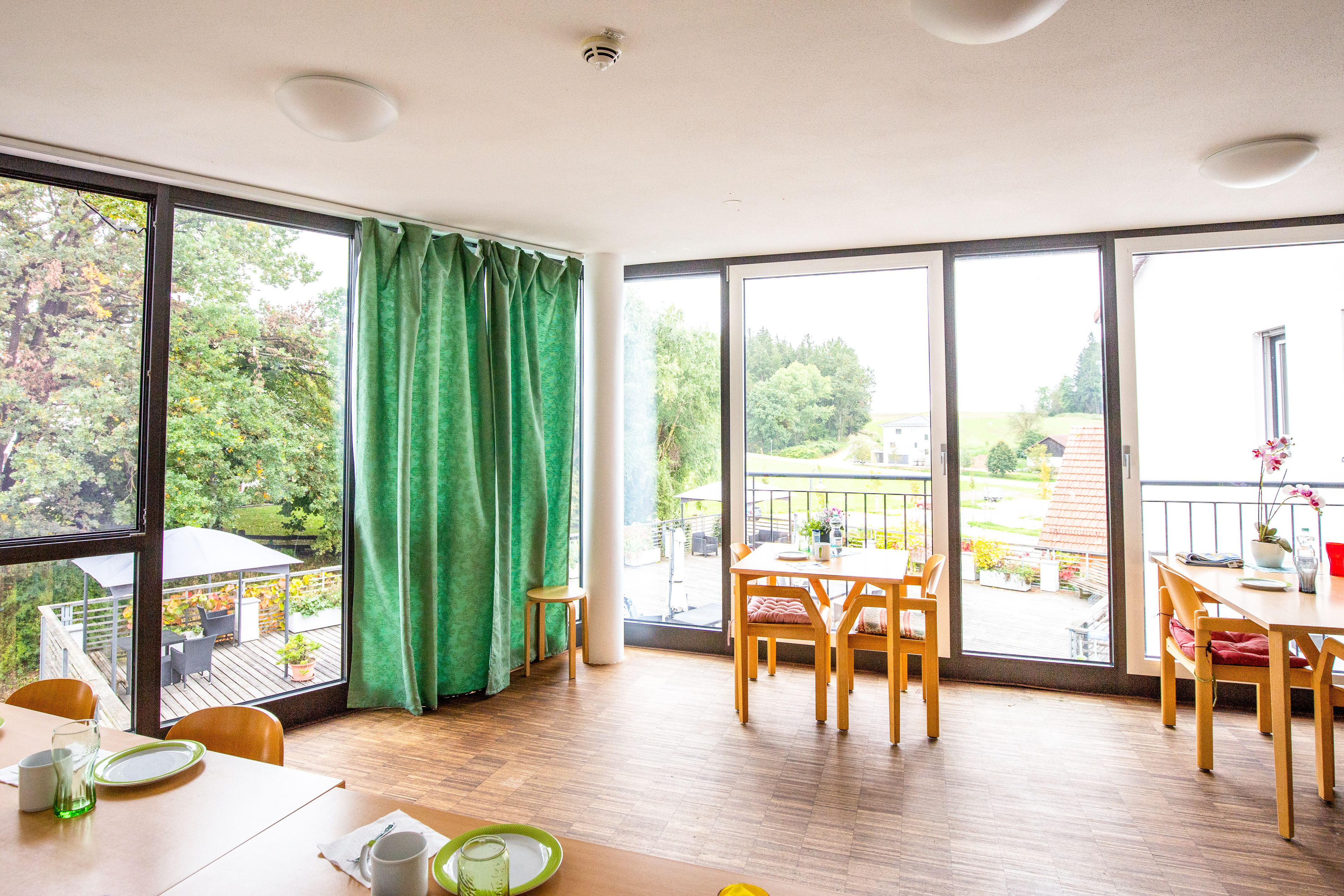 Jede Etage verfügt einen zentralen Aufenthaltsbereich, indem auch die Speisen eingenommen werden. Hier wird auch gespielt, getanzt, gesungen, gemalt, geratscht und in alten Zeiten geschwelgt.